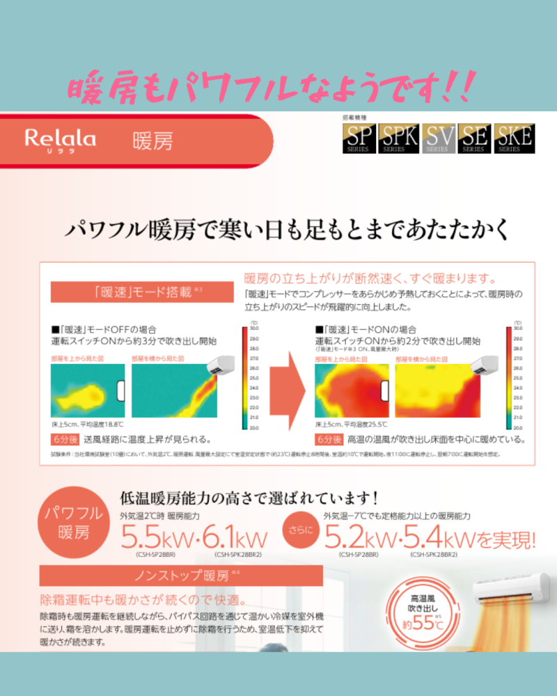 ③東北電力推奨暖房エアコンにも認定のパワフル暖房運転